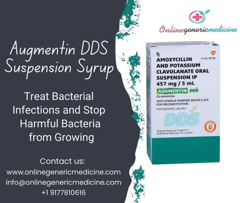Order Augmentin DDS Suspension Syrup from OnlineGenericMedicine, a trusted antibiotic containing Amoxicillin and Clavulanate Potassium. It is used to treat bacterial infections in children and adults, helping stop the growth of harmful bacteria and promote faster recovery. Enjoy affordable prices, safe payments, and quick home delivery. Trust OnlineGenericMedicine for genuine medicines and reliable healthcare products from licensed global pharmacies. Stay protected with Augmentin DDS Suspension Syrup today. Order Now!